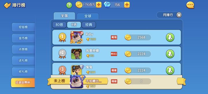 世界杯是不是玩不了了,半天排不到人,看了一下排行榜,这也不对劲啊,8倍一局都可以2000+