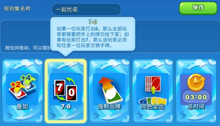 三分钟时限太短,咱们的规则和之前玩的不一样,其实这些都是可以在咱们的房间模式自定义!在房间模式里,你可以邀请你的好友一起玩,也可以按照自己的喜好,选择自己喜欢的规则,叠加、换牌、同色全出、双色全出、小丑牌……任君挑选!这里也有大家一直期待的无限时间模式,想玩多久玩多久!我们还设计了每周更新的随机规则模式,如果你想挑战未知的乐趣,也可以选择这个模式哦~只有想不到,没有我们提供不了!还有,这些