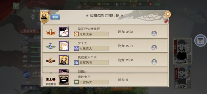 数据来源:英雄战力前三平均值数据更新:2024年5月26日9时银角:3921聂小倩:3786土行孙:3725木吒:3660龙王:3427九头虫:3061嫦娥:2907金角:2842总钻风:2769盘丝洞主:2571千里眼顺风耳:2547后羿:2440申公豹:2167灵感大王:1629很多人说看不到,应该是被限流了,重新发一下#新游攻略先锋企划