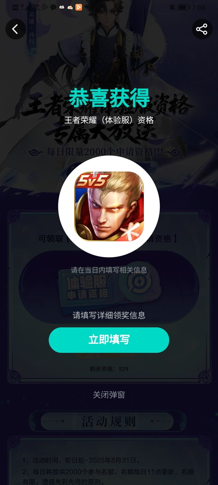 王者荣耀官方王者荣耀官方希望你能让我加入白名单,我是荣耀八年玩家,最早用我家长的手机玩了两年,后来自己注册了一个手机号,玩了六年#王者荣耀体验服申请