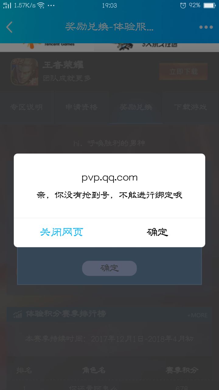 游戏QQ:1980938036联系QQ:1980938036游戏昵称:DYG、逍遥游戏区服:体验服手机版本:安卓BUG描述(必须有):体验服账号与正式服账号不能绑定,体验币无法兑换一系列问题。BUG发生时间(必须有):2020/4/13重现频率:始终重现方式:无法绑定账号截图: