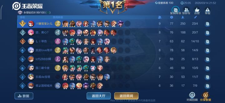 体验服模拟战第一名排名分没加