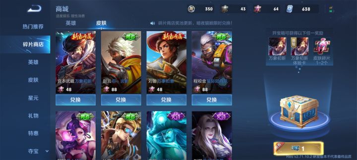 皮肤碎片又更新?这才几天啊?好不容易有碎片了又更新,快点更新下一波传说皮吧