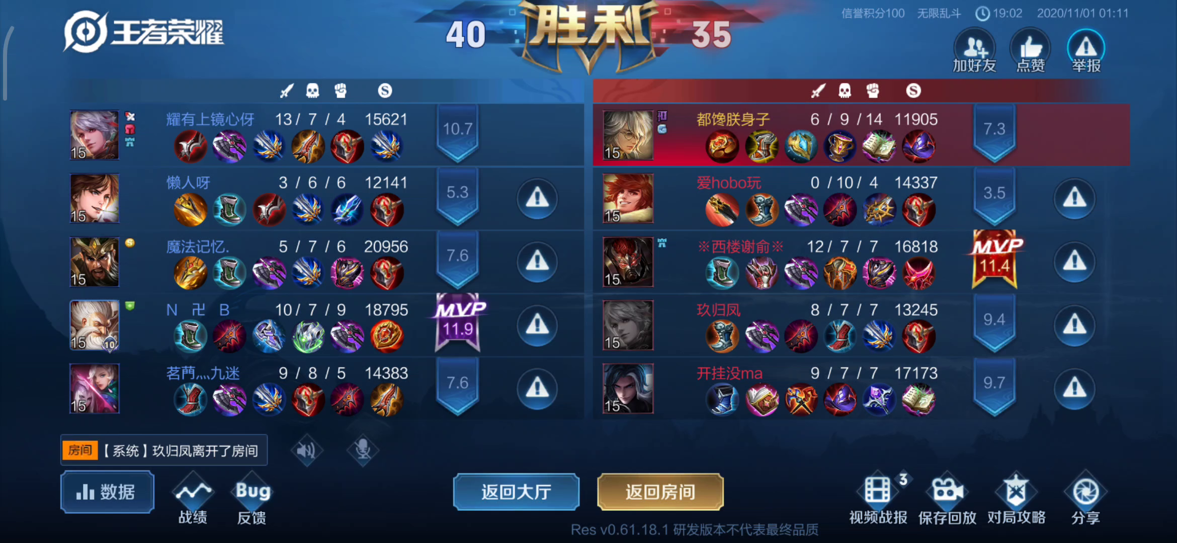 顺带一提体验服的bug反馈功能最好能支持一下图片上传,码字半天可能也没一张图的表达明确本人菜,大家留意一下这种带提示的英雄就好,战绩的话不要在意嗷😁