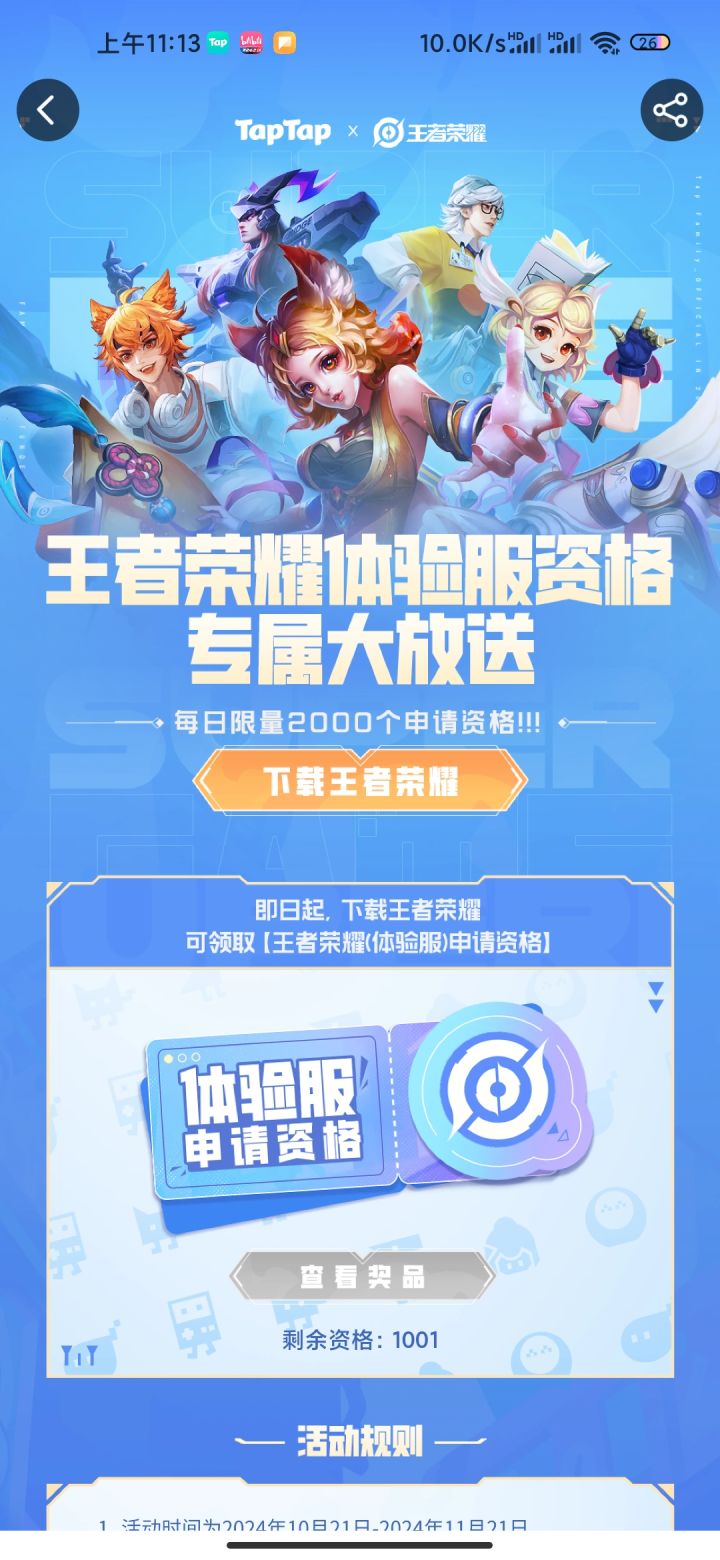 之前tap tap送体验服资格账号的活动为什么还没有发放资格?就是预约王者荣耀世界游戏。#王者荣耀前瞻版