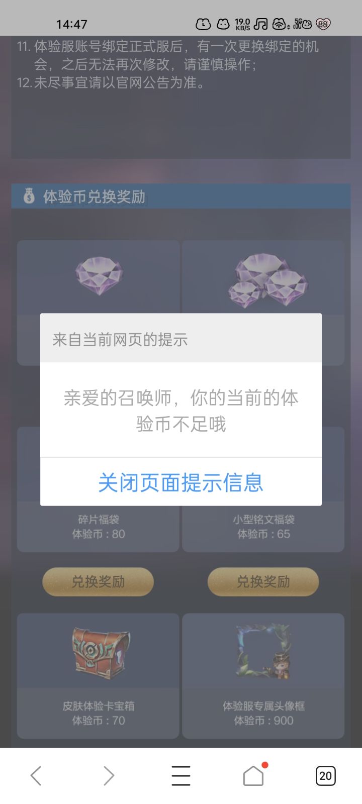 不能兑换正式服奖励