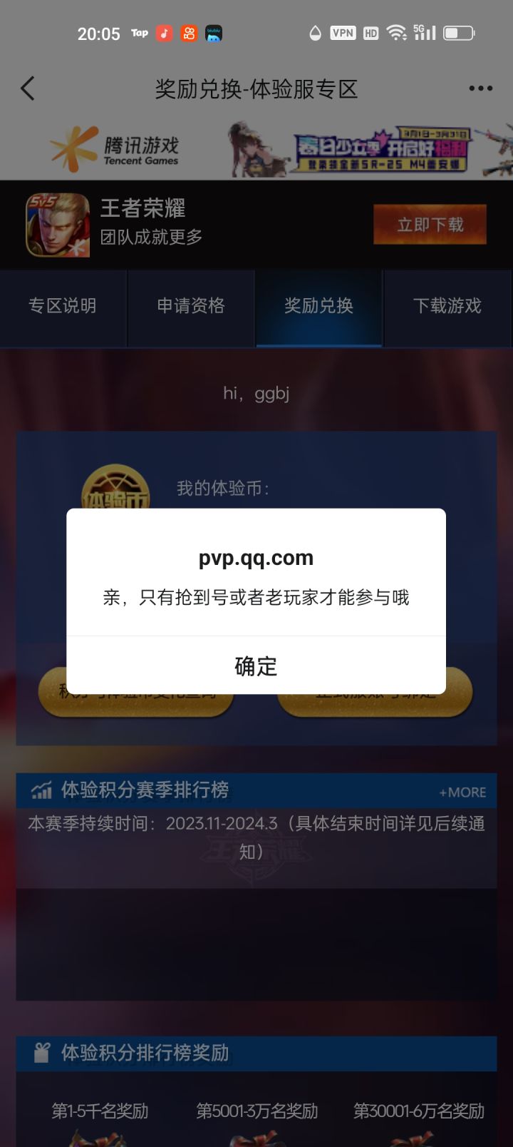 为什么我玩不了啊?说什么不是嗯,测试白名单啥东西