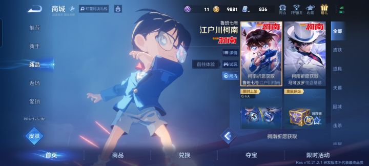 很好奇,王者荣耀体验服,上柯南皮肤,结果不给抽奖池,这个皮肤有啥用啊