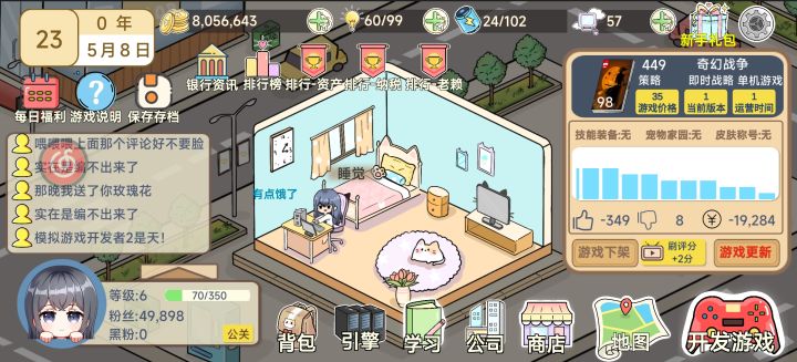 1.银行利息永远在明日再领2.收购公司领分红只有0元3.物品制作勋章做一次直接清零 那怕有10个#bug反馈