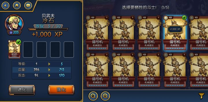 5级的属性再看下,金卡5级加了261点的攻击和1412的血量。