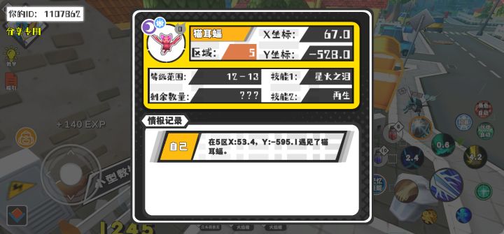 幸运时刻分享! 【魔物异常出没】8月12日下午9点 - 猫耳蝠【强度0】 【5区】 【X:67.0, Y:-528.0】
