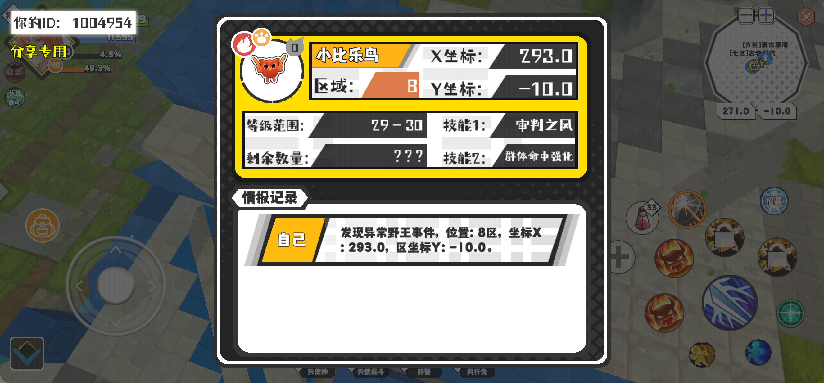 幸运时刻分享! 【野王异常出没】3月6日上午12点 - 小比乐鸟【强度0】 【8区】 【X:293.0, Y:-10.0】
