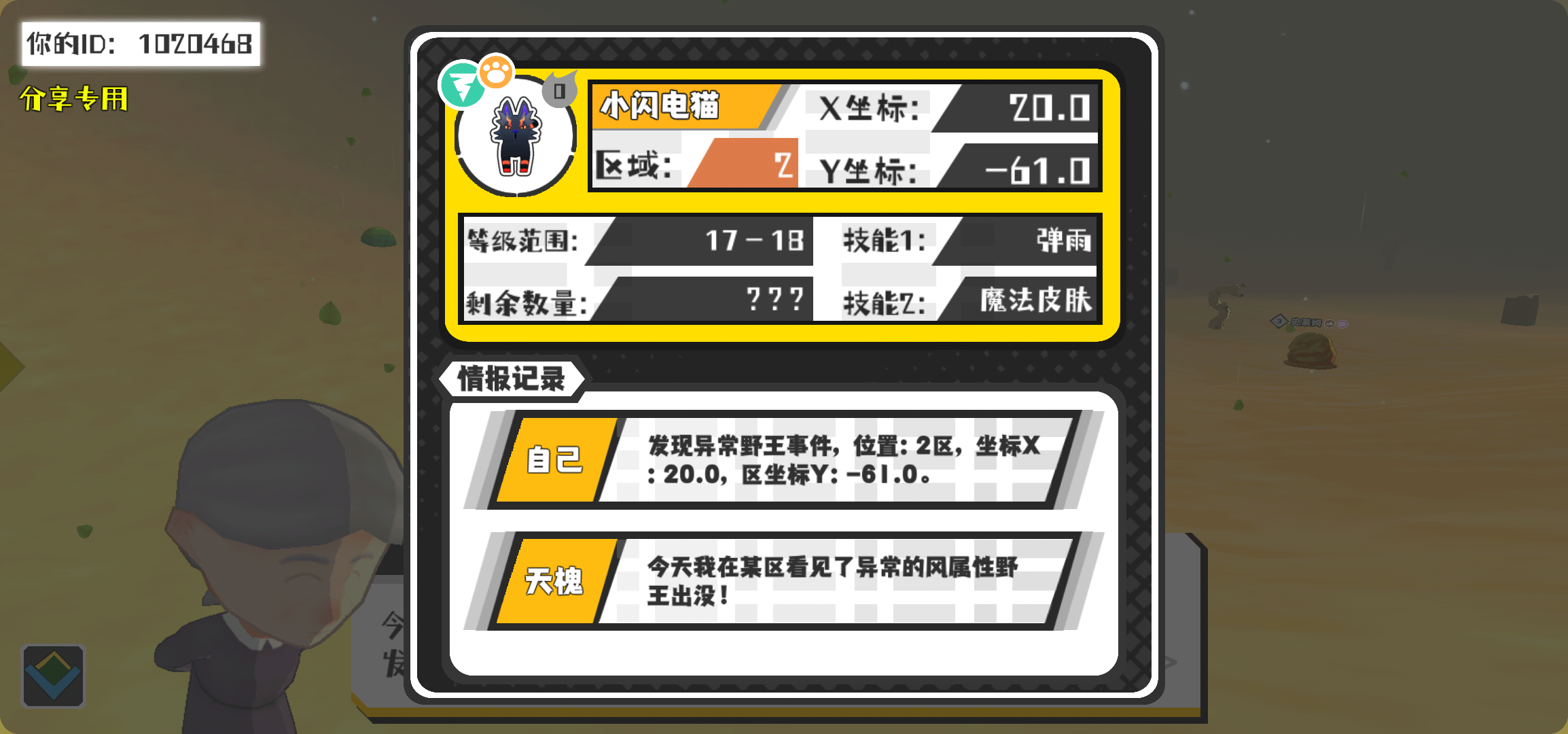 幸运时刻分享! 【野王异常出没】3月5日下午11点 - 小闪电猫【强度0】 【2区】 【X:20.0, Y:-61.0】