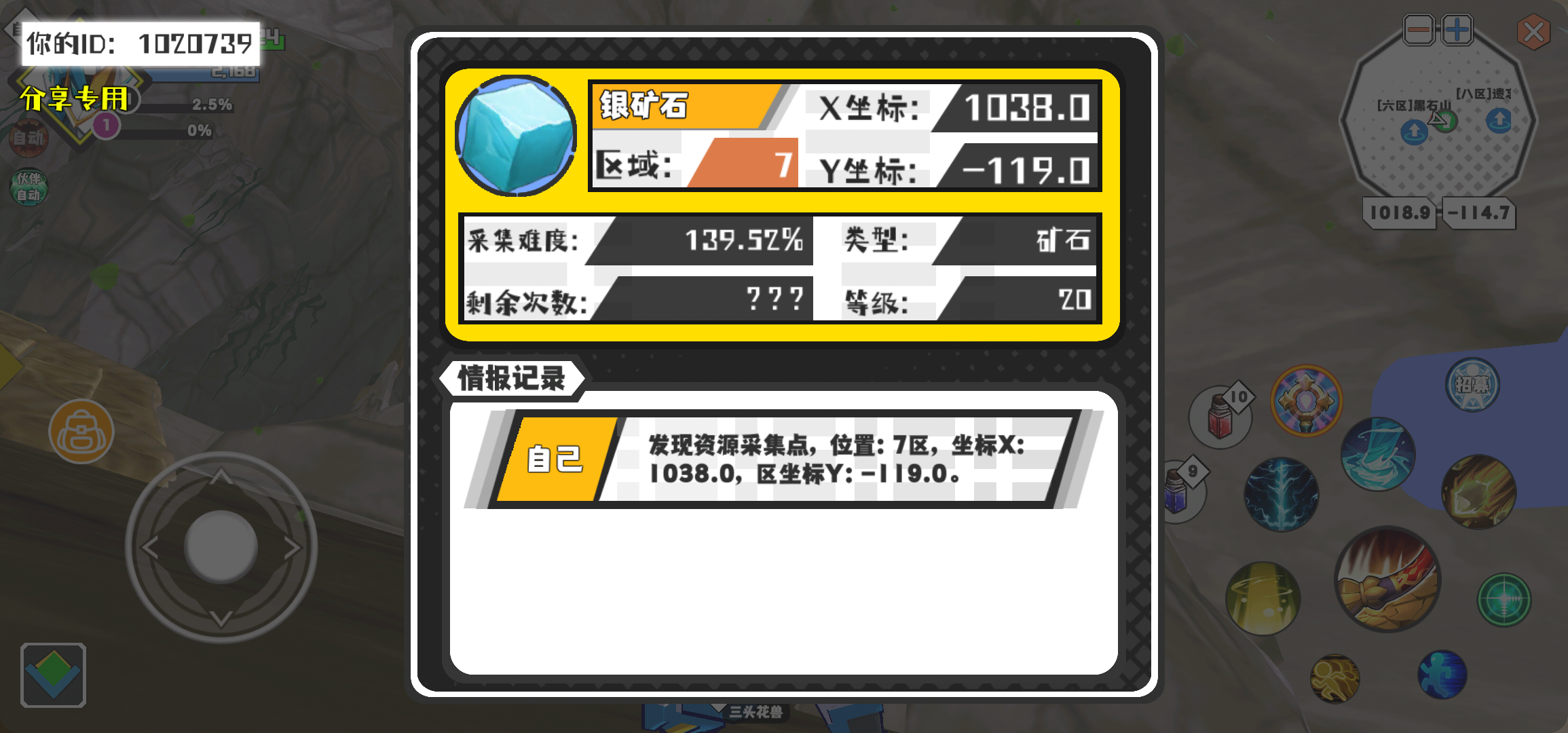幸运时刻分享! 【资源采集点】3月5日下午10点 - 银矿石【20级】 【7区】 【X:1038.0, Y:-119.0】