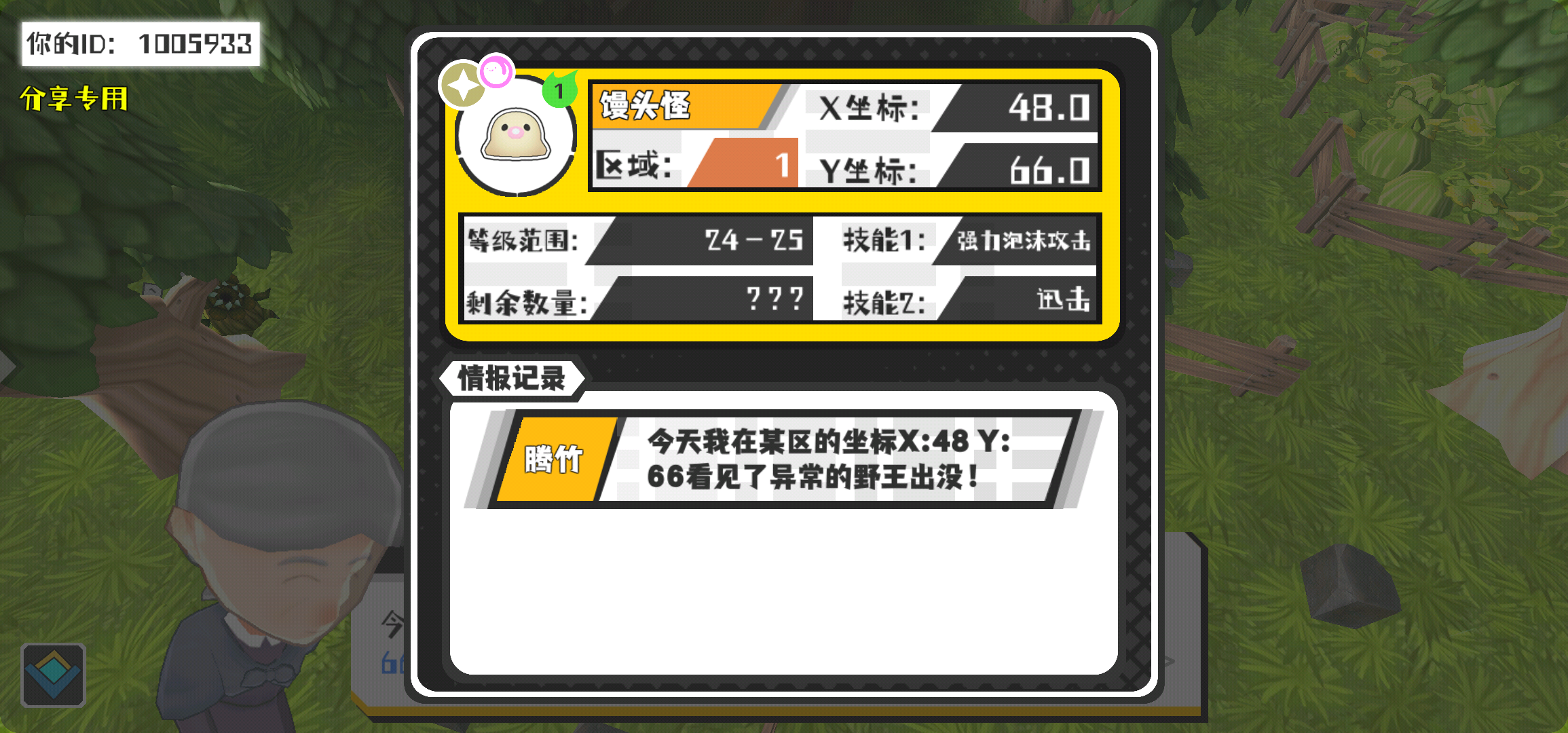 幸运时刻分享! 【野王异常出没】3月5日下午8点 - 馒头怪【强度1】 【1区】 【X:48.0, Y:66.0】