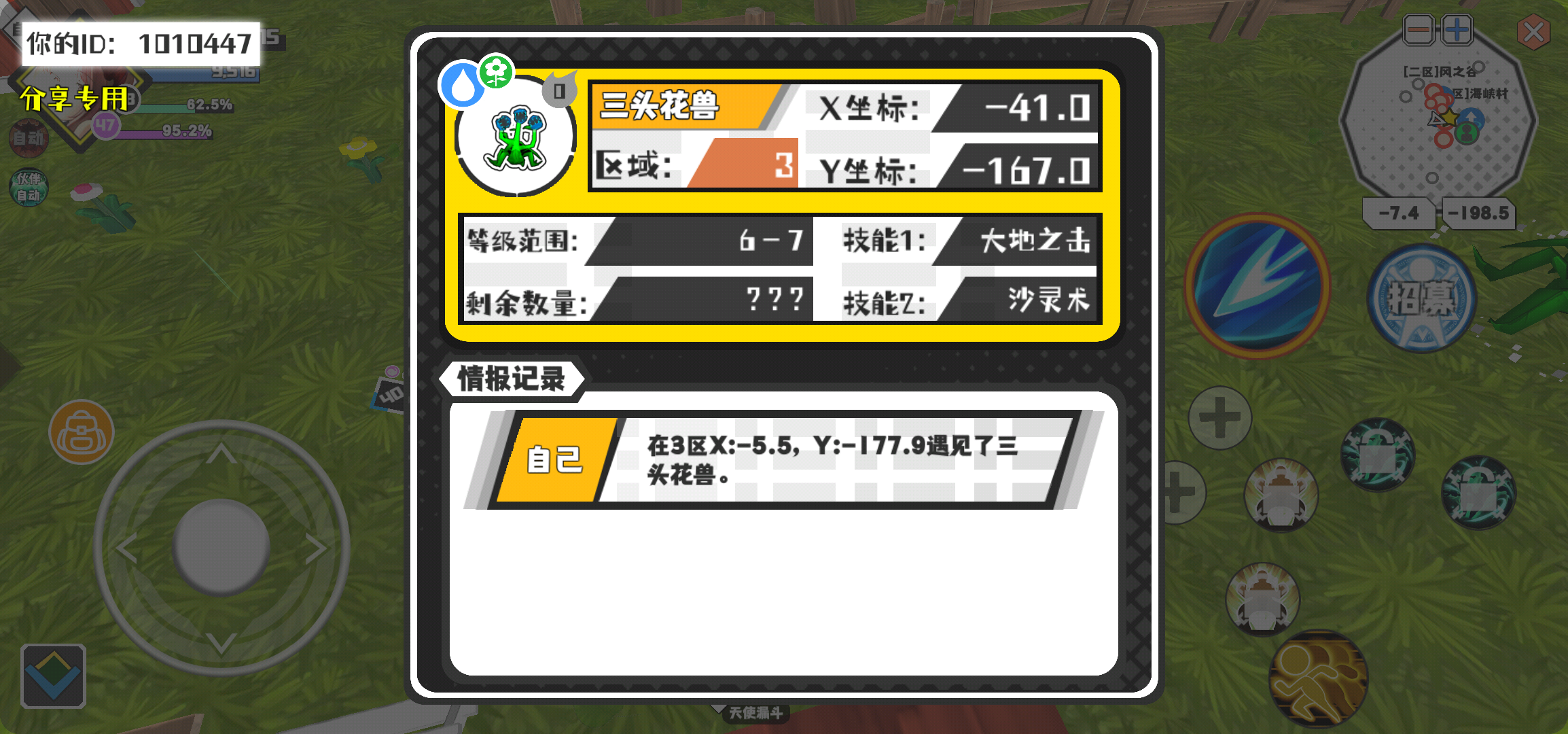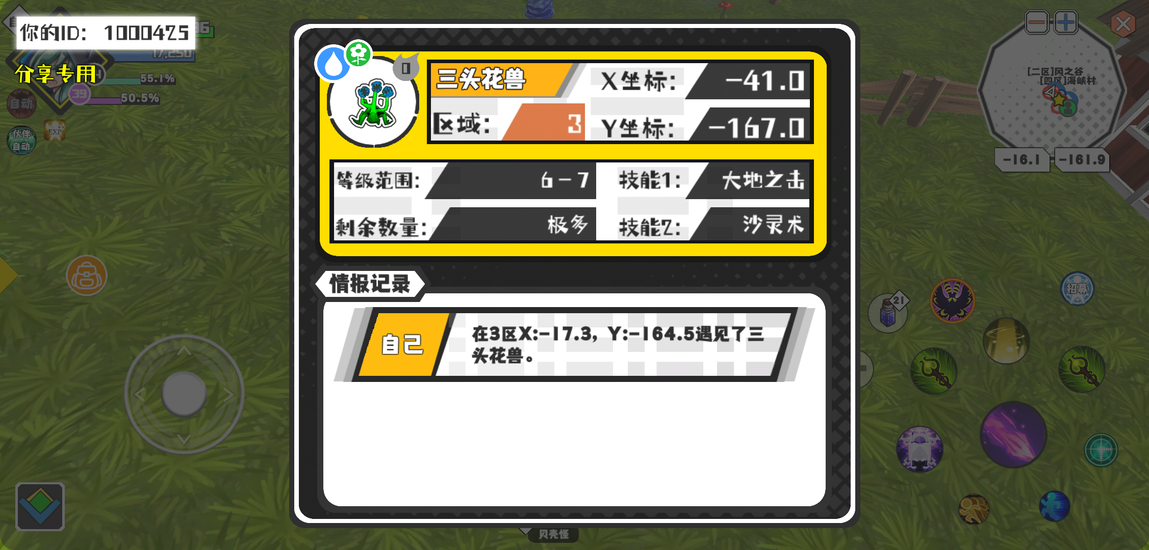 幸运时刻分享! 【魔物异常出没】3月4日下午11点 - 三头花兽【强度0】 【3区】 【X:-41.0, Y:-167.0】