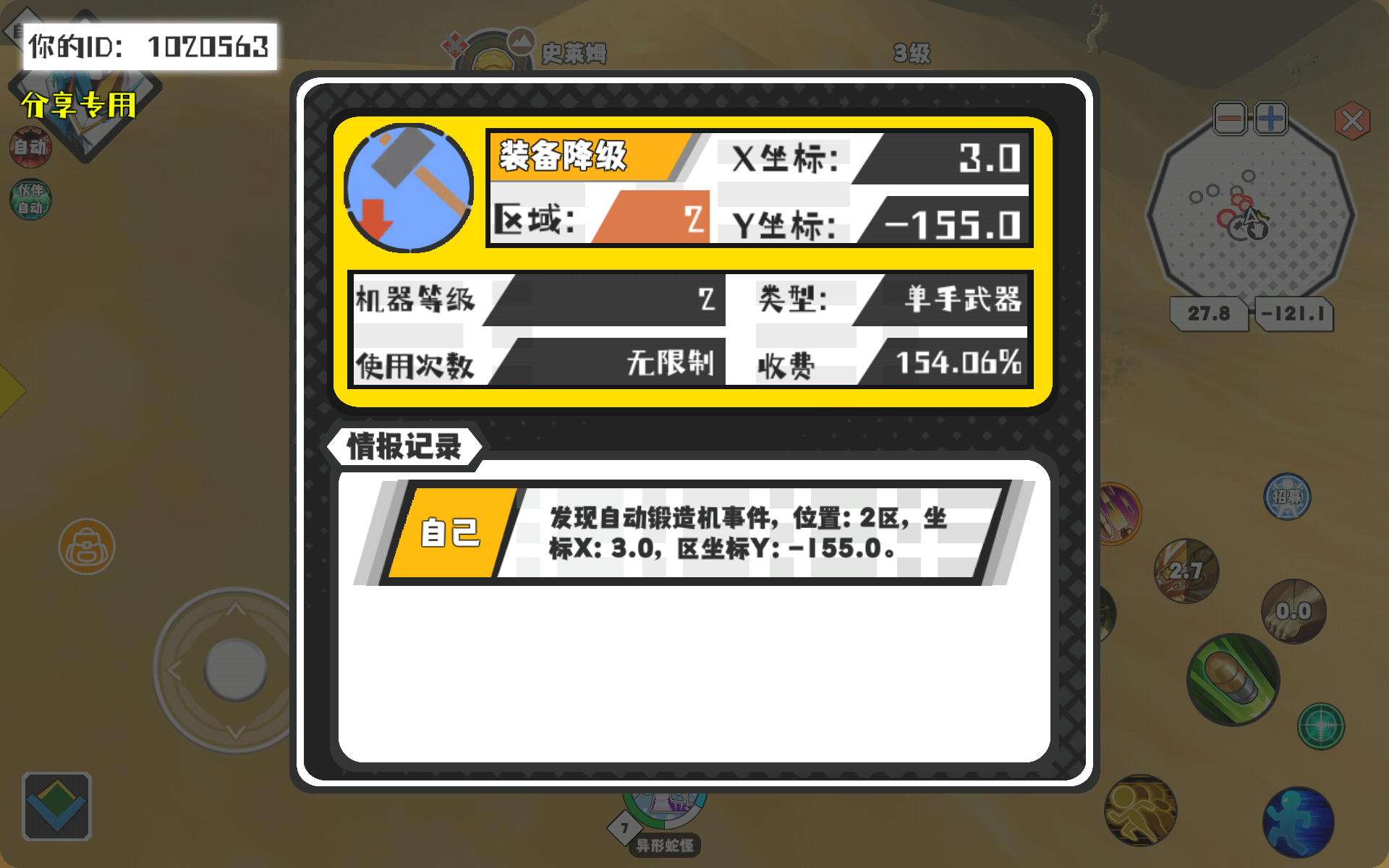 幸运时刻分享! 【自动锻造机】3月4日下午5点 - 装备降级【2级机器】 【2区】 【X:3.0, Y:-155.0】