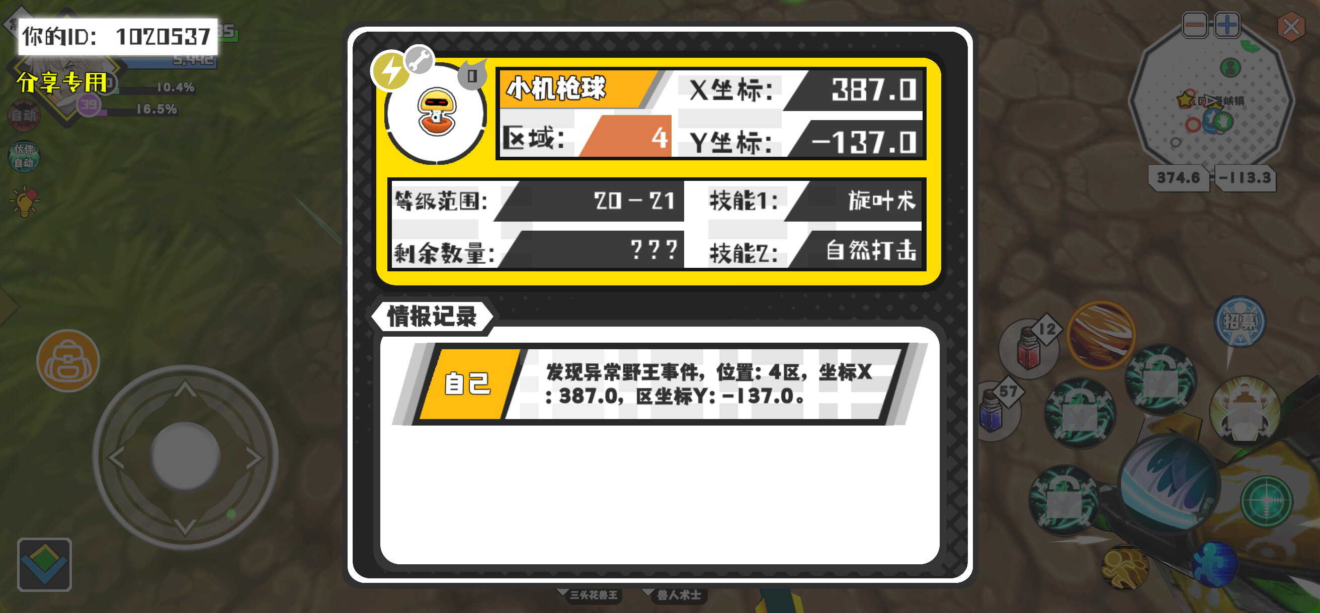 幸运时刻分享! 【野王异常出没】3月4日下午6点 - 小机枪球【强度0】 【4区】 【X:387.0, Y:-137.0】