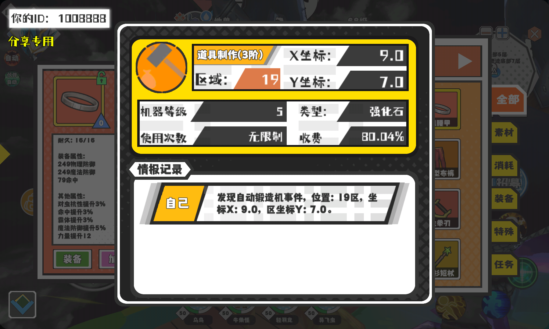幸运时刻分享! 【自动锻造机】3月4日下午5点 - 道具制作(3阶)【5级机器】 【19区】 【X:9.0, Y:7.0】