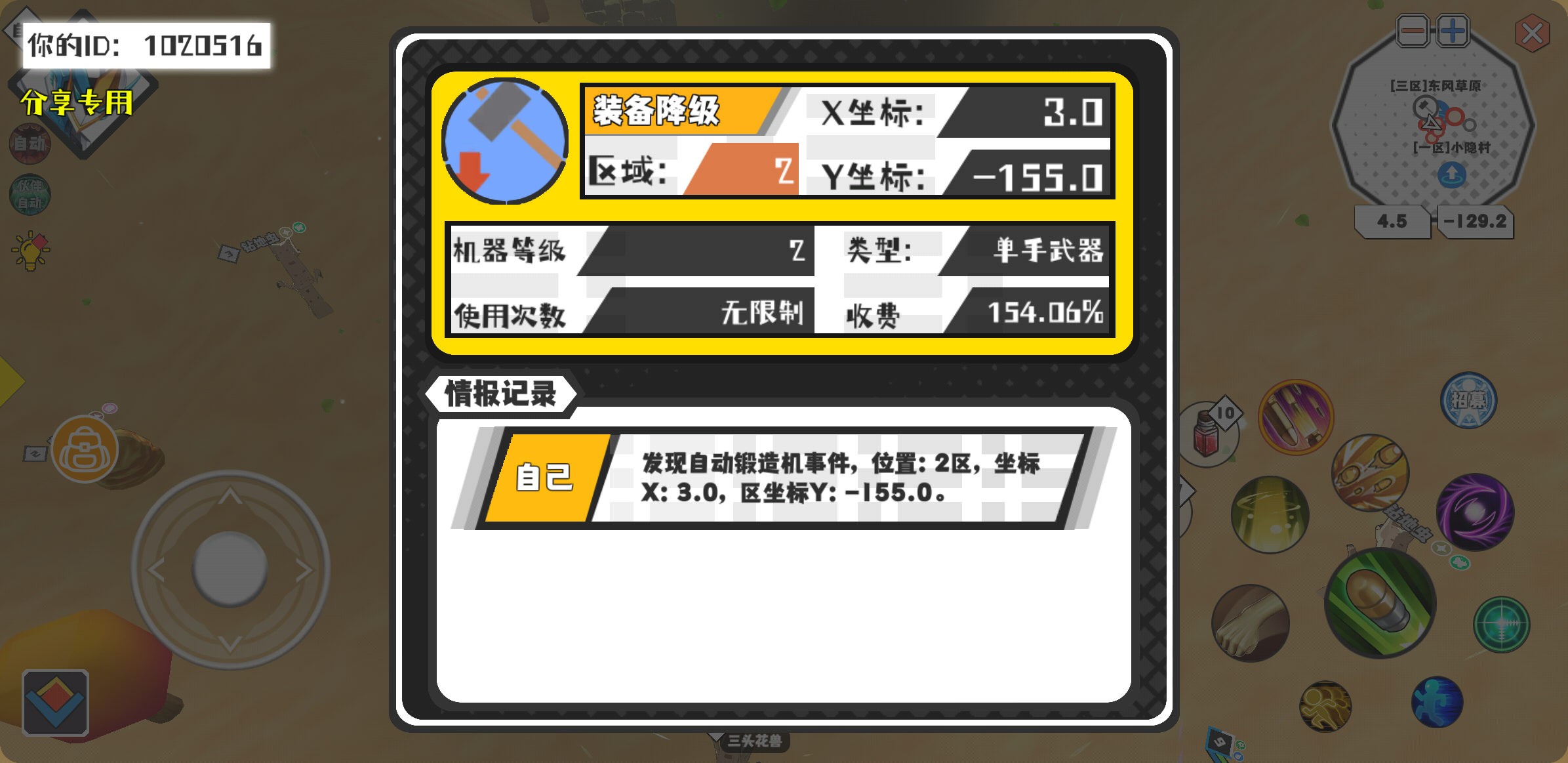 幸运时刻分享! 【自动锻造机】3月4日上午12点 - 装备降级【2级机器】 【2区】 【X:3.0, Y:-155.0】