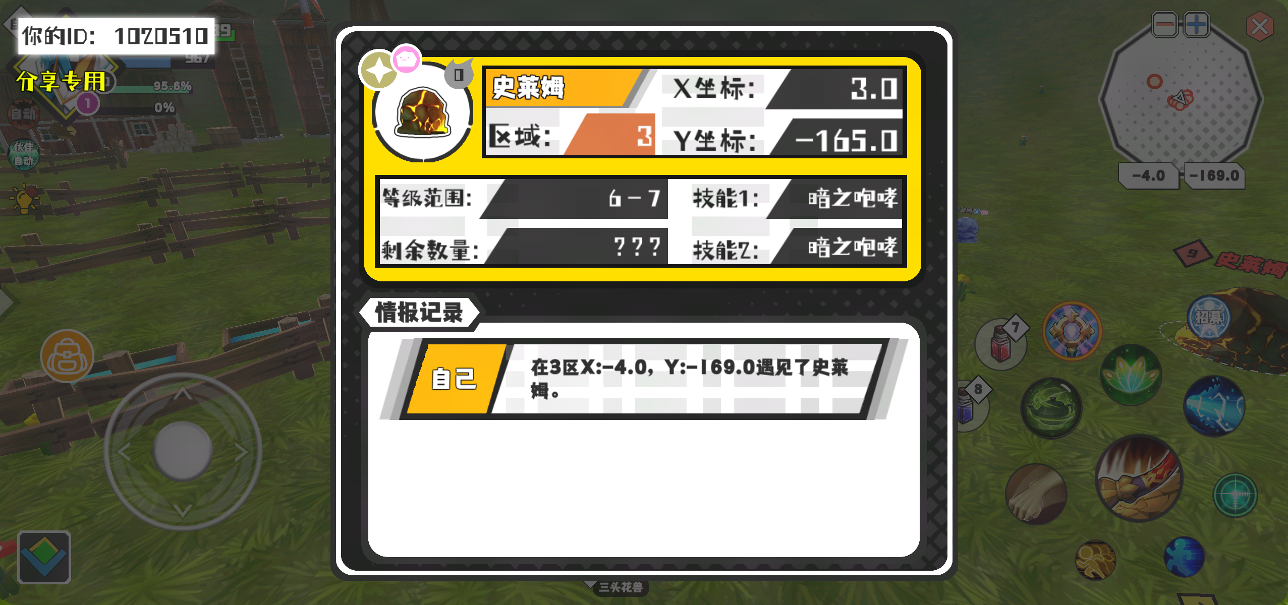 幸运时刻分享! 【魔物异常出没】3月3日下午9点 - 史莱姆【强度0】 【3区】 【X:3.0, Y:-165.0】