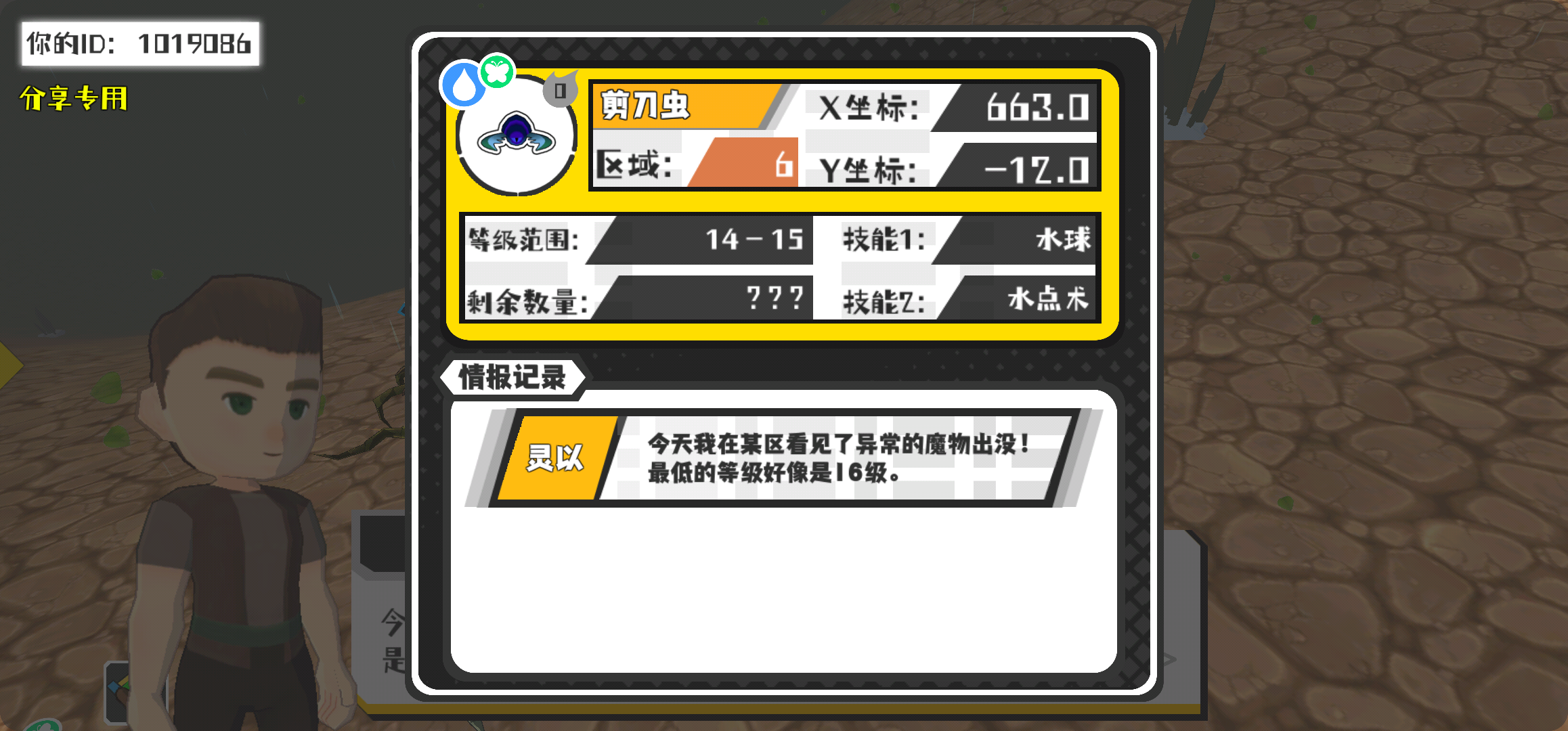 幸运时刻分享! 【魔物异常出没】3月3日下午9点 - 剪刀虫【强度0】 【6区】 【X:663.0, Y:-12.0】