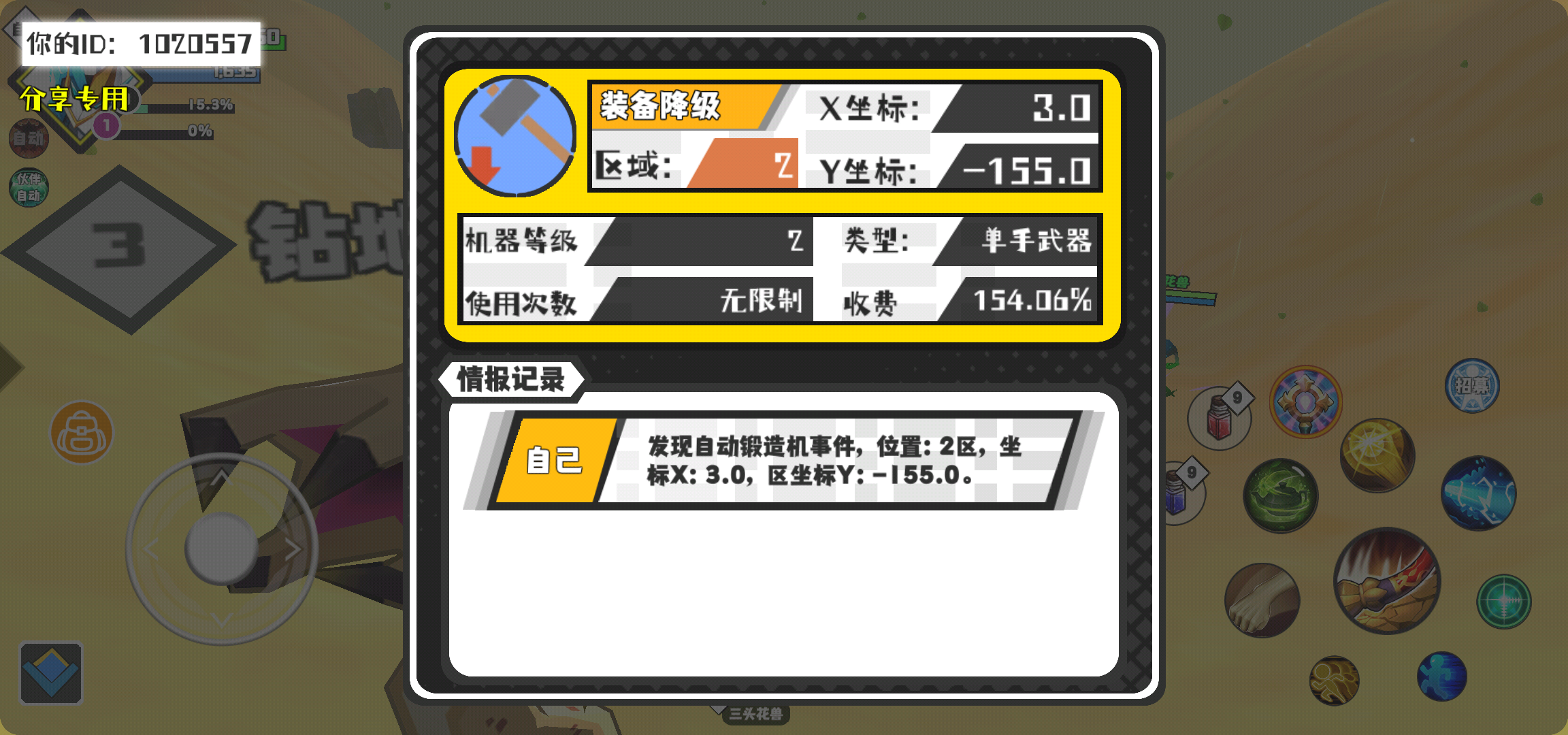 幸运时刻分享! 【自动锻造机】3月3日下午9点 - 装备降级【2级机器】 【2区】 【X:3.0, Y:-155.0】