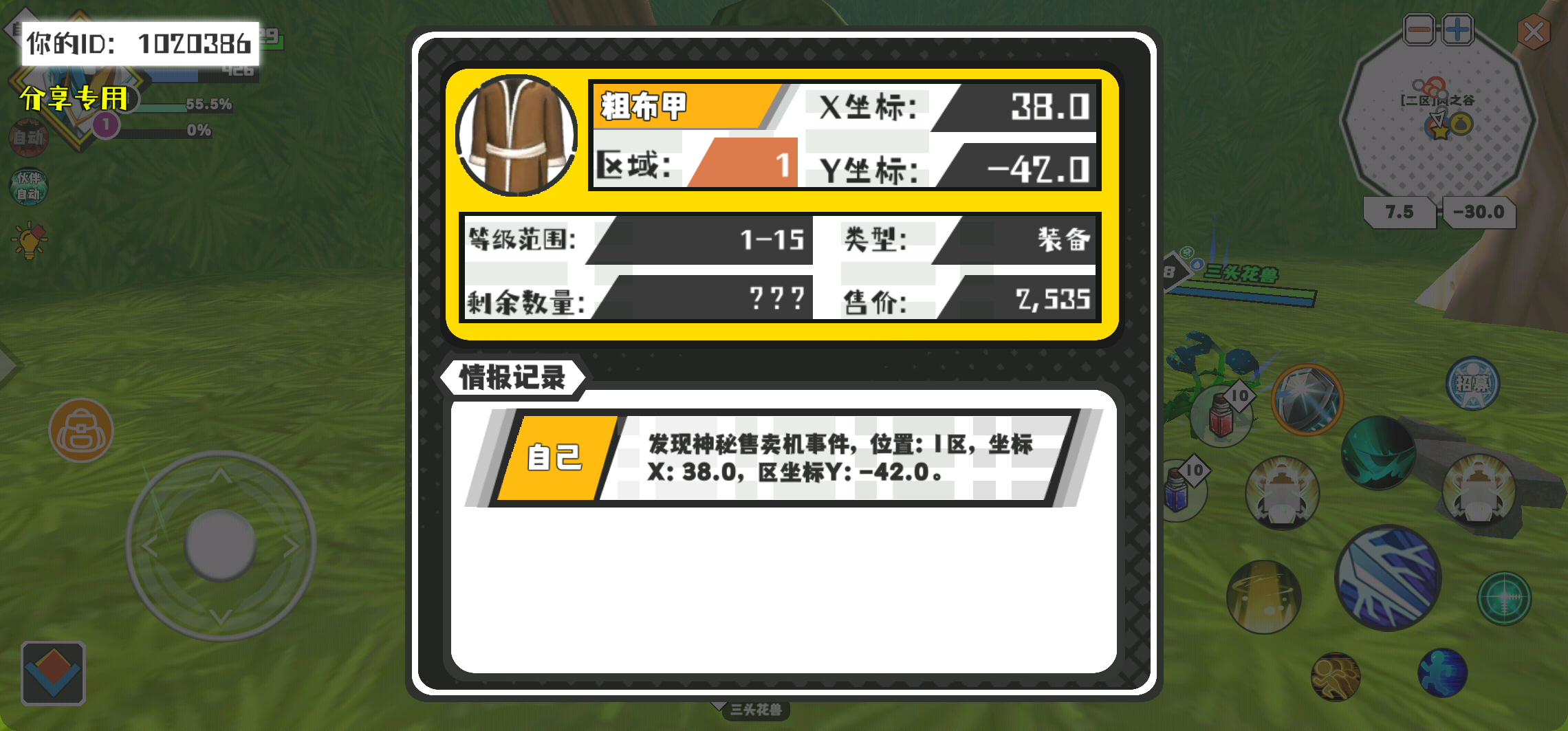 幸运时刻分享! 【神秘售卖机】3月2日下午10点 - 粗布甲【1-15级 】【稀有度:精良】 【1区】 【X:38.0, Y:-42.0】