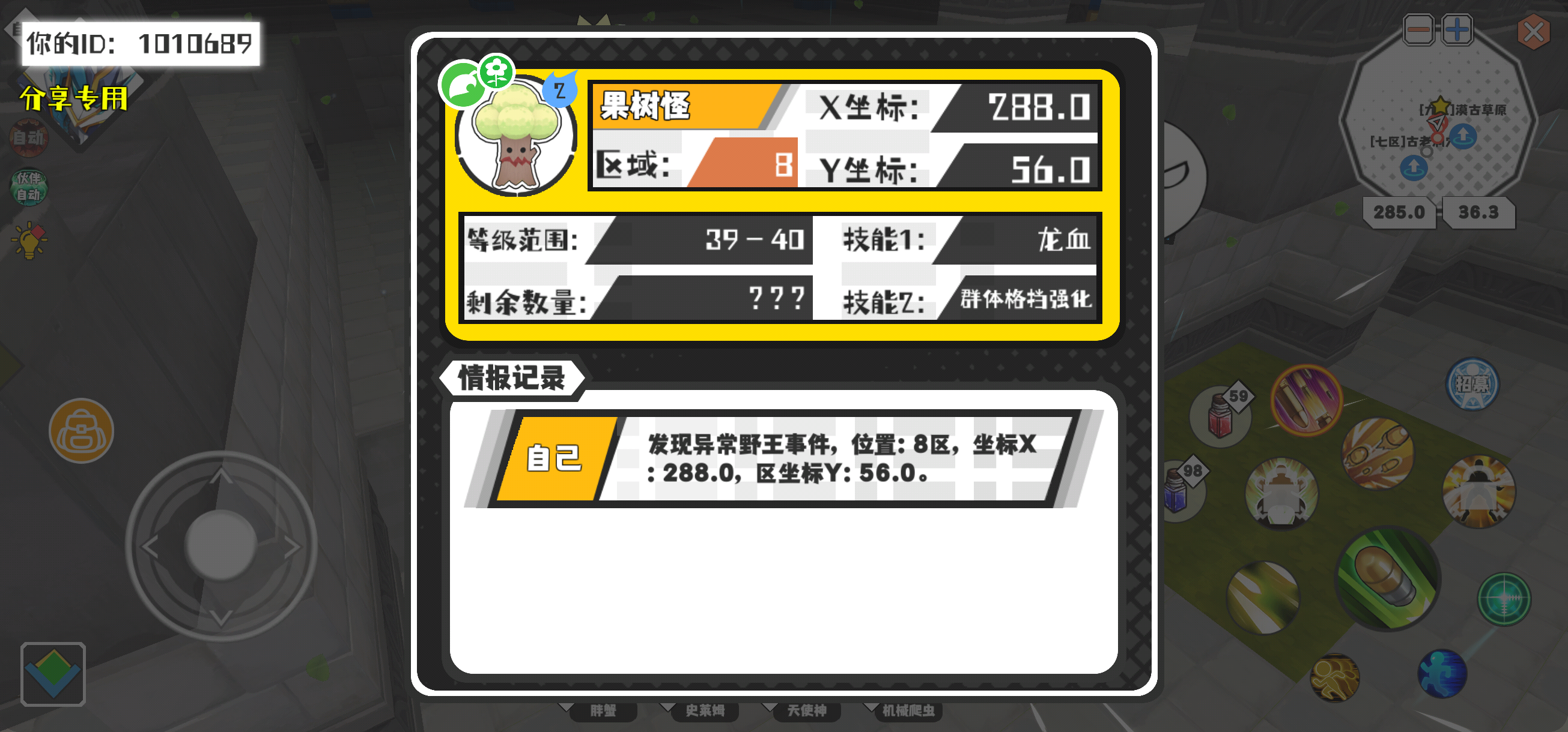 幸运时刻分享! 【野王异常出没】3月2日下午9点 - 果树怪【强度2】 【8区】 【X:288.0, Y:56.0】