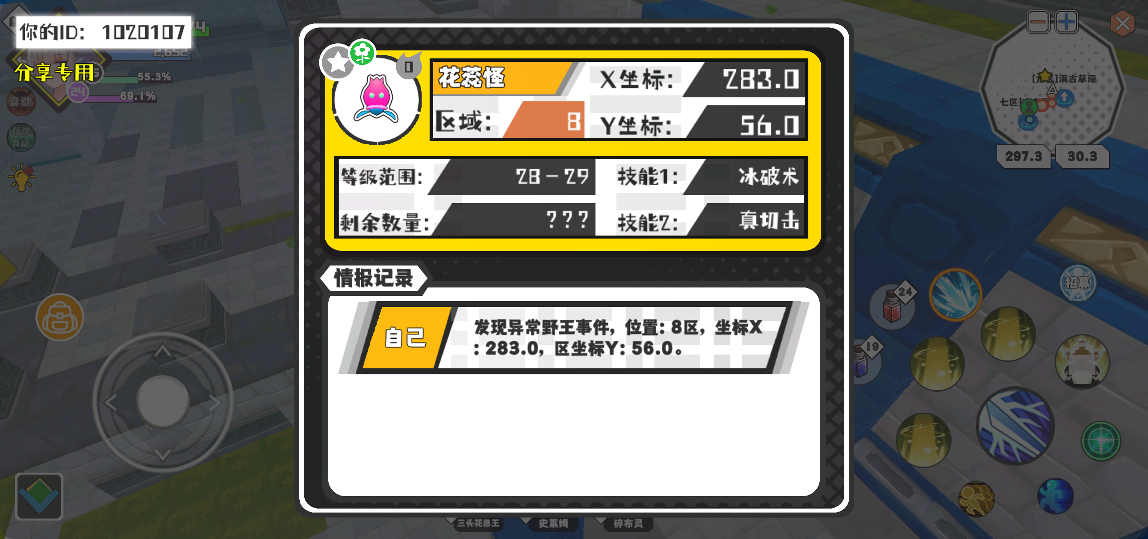 幸运时刻分享! 【野王异常出没】3月2日下午8点 - 花蕊怪【强度0】 【8区】 【X:283.0, Y:56.0】