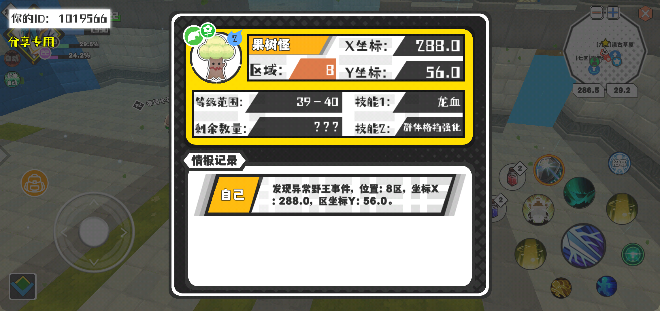 幸运时刻分享! 【野王异常出没】3月2日下午9点 - 果树怪【强度2】 【8区】 【X:288.0, Y:56.0】