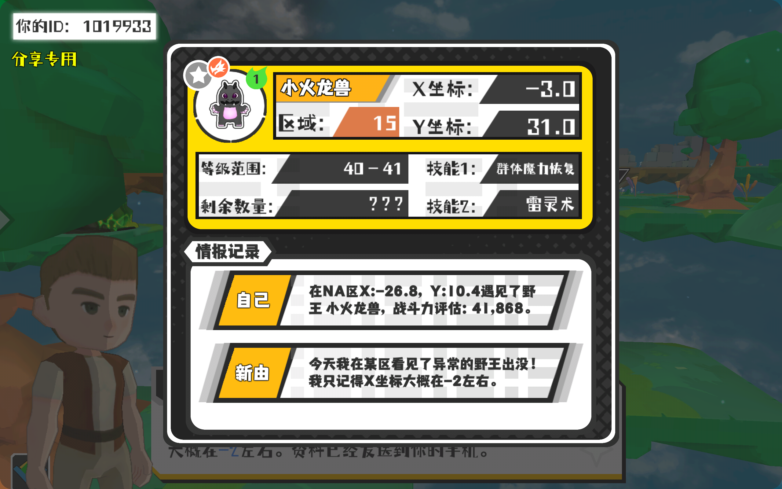 幸运时刻分享! 【野王异常出没】3月2日下午1点 - 小火龙兽【强度1】 【15区】 【X:-3.0, Y:31.0】