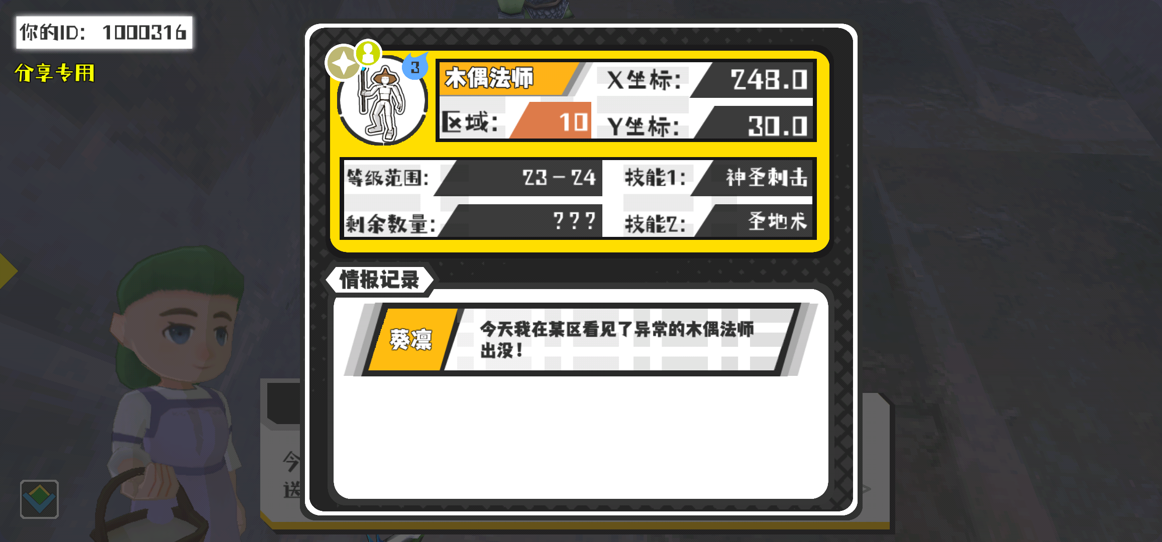 幸运时刻分享! 【魔物异常出没】3月2日上午8点 - 木偶法师【强度3】 【10区】 【X:248.0, Y:30.0】