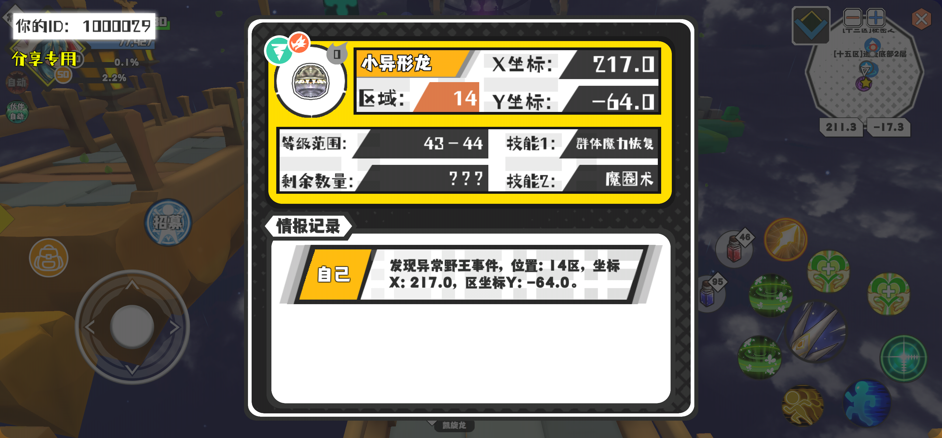 幸运时刻分享! 【野王异常出没】3月2日上午6点 - 小异形龙【强度0】 【14区】 【X:217.0, Y:-64.0】