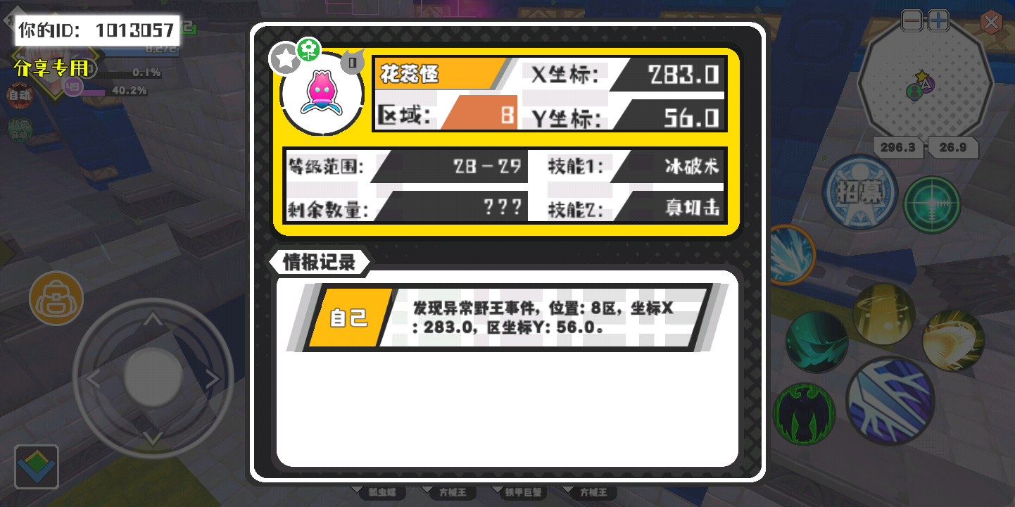 幸运时刻分享! 【野王异常出没】3月2日上午12点 - 花蕊怪【强度0】 【8区】 【X:283.0, Y:56.0】