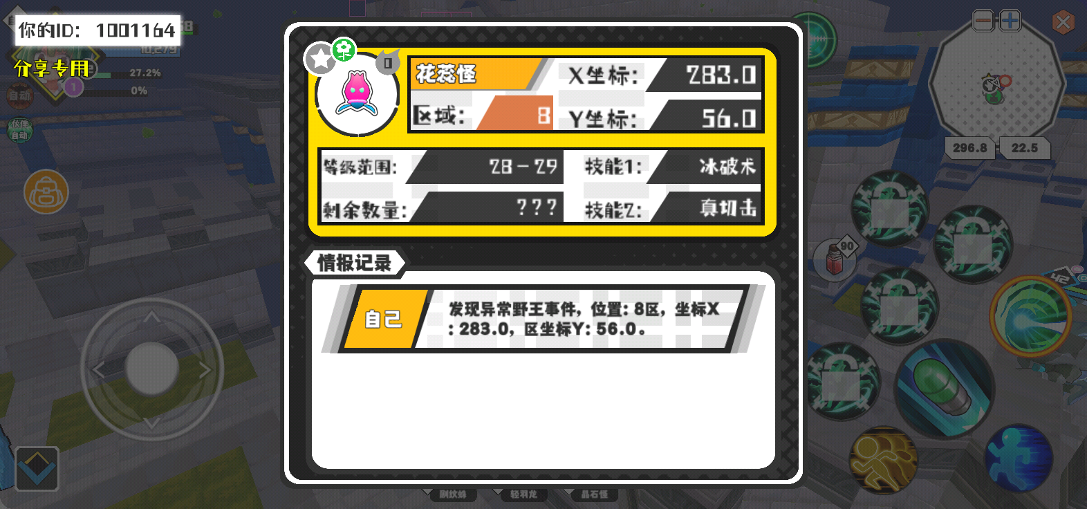 幸运时刻分享! 【野王异常出没】3月2日下午12点 - 花蕊怪【强度0】 【8区】 【X:283.0, Y:56.0】