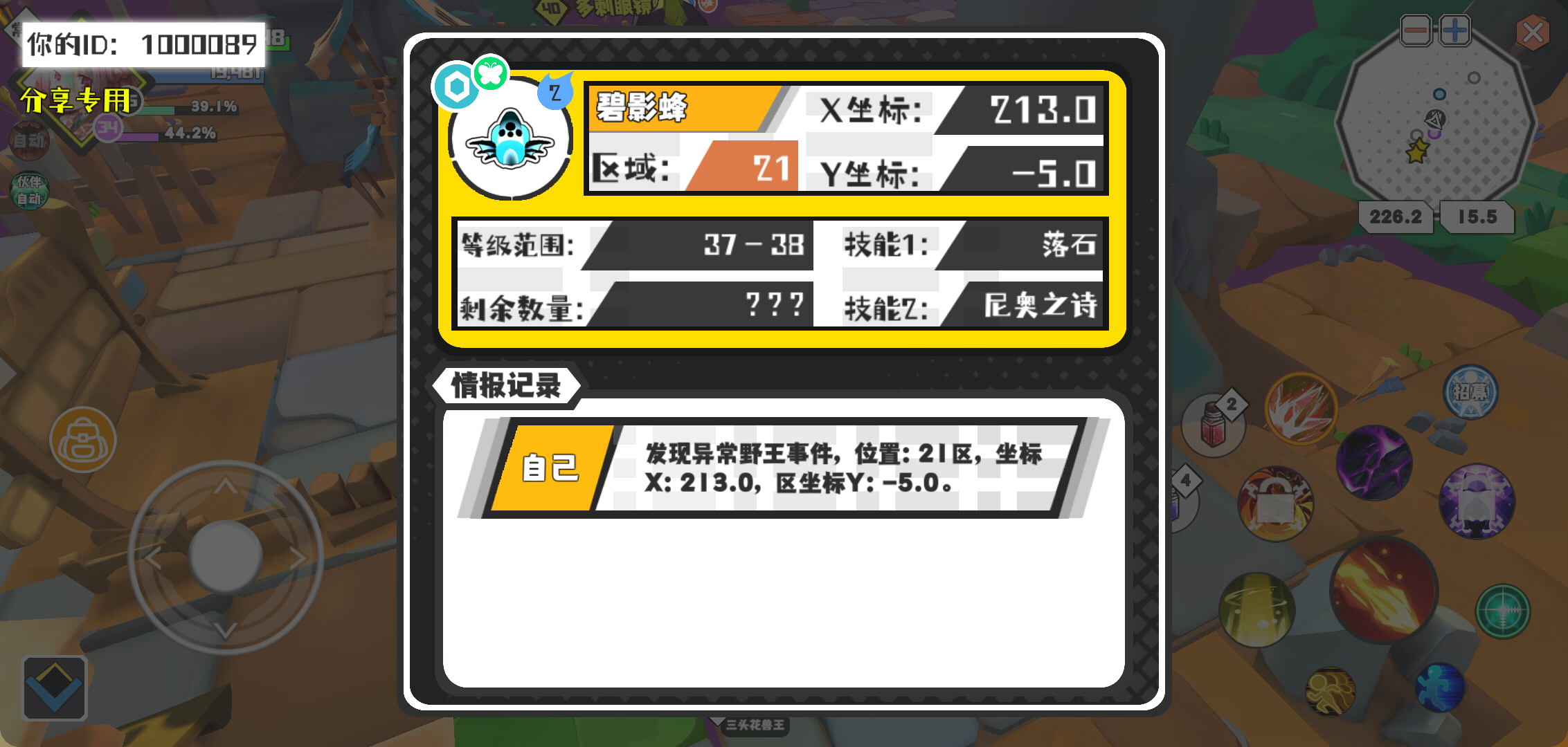 幸运时刻分享! 【野王异常出没】3月2日上午10点 - 碧影蜂【强度2】 【21区】 【X:213.0, Y:-5.0】