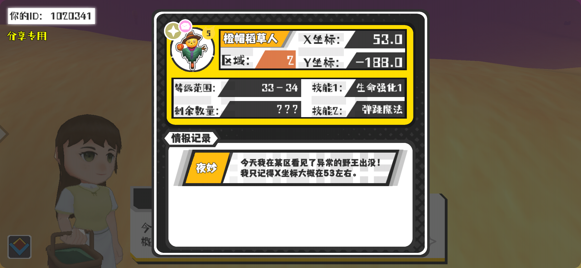 幸运时刻分享! 【野王异常出没】3月2日上午11点 - 橙帽稻草人【强度5】 【2区】 【X:53.0, Y:-188.0】