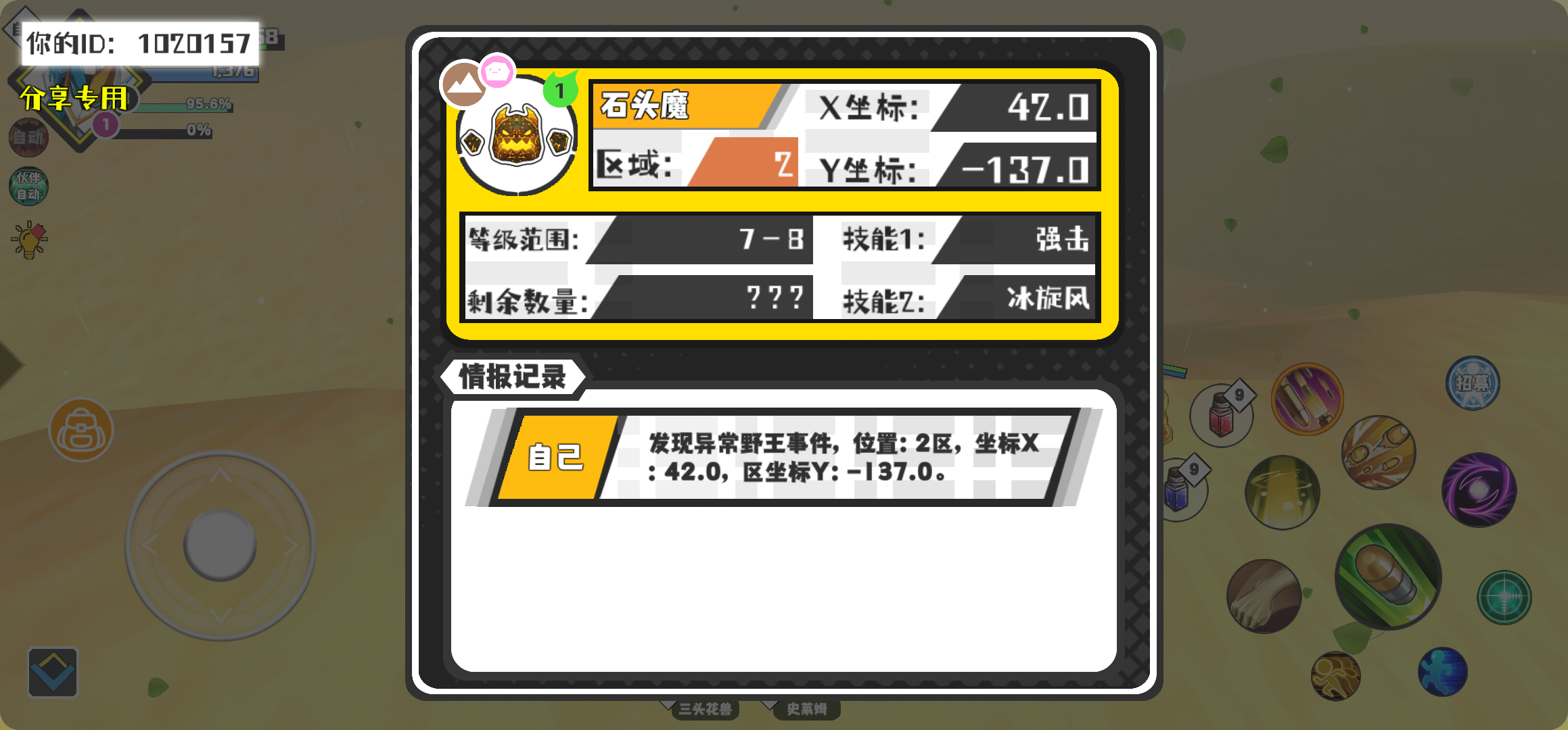 幸运时刻分享! 【野王异常出没】2月29日下午1点 - 石头魔【强度1】 【2区】 【X:42.0, Y:-137.0】