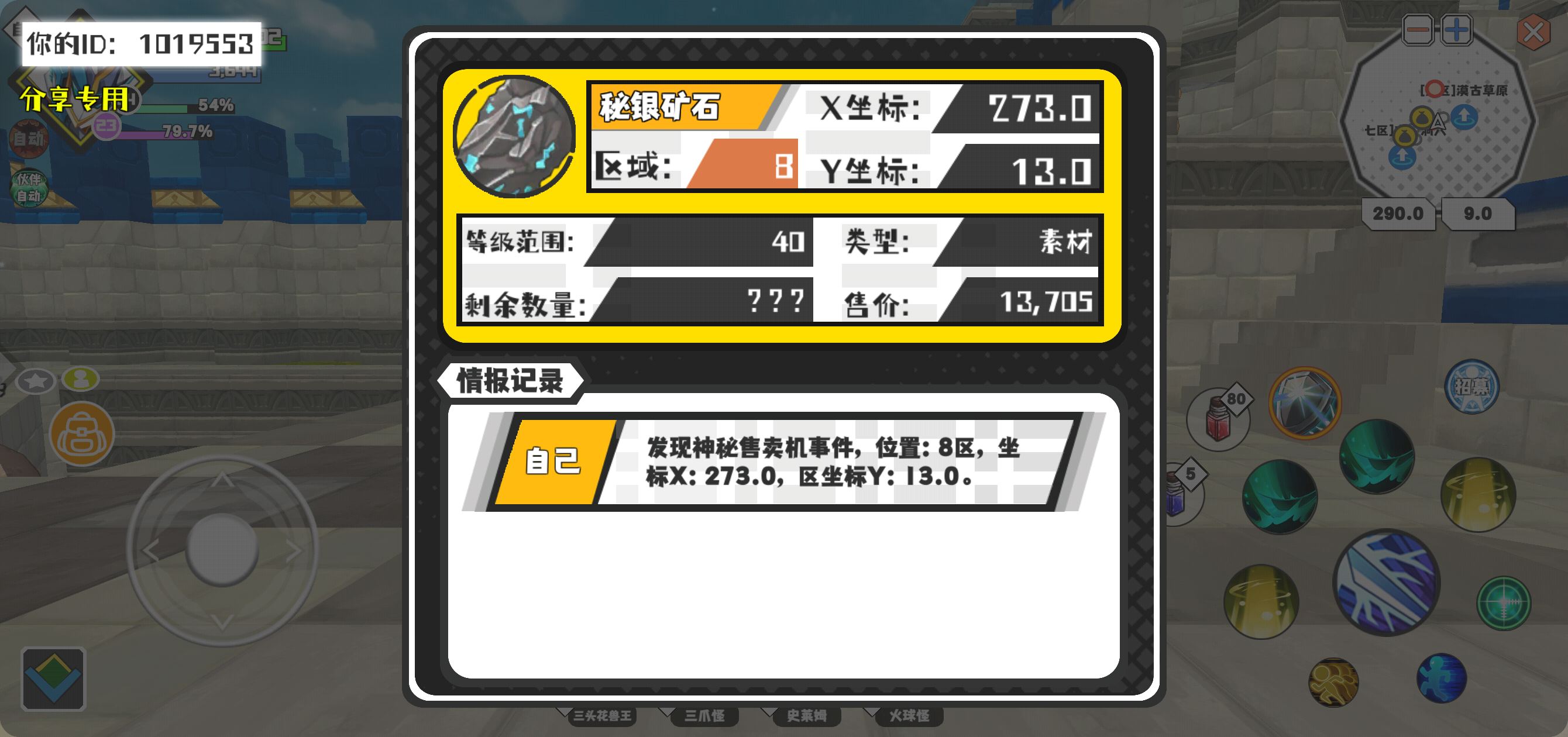 幸运时刻分享! 【神秘售卖机】2月29日下午12点 - 秘银矿石【40级 】【稀有度:传说】 【8区】 【X:273.0, Y:13.0】