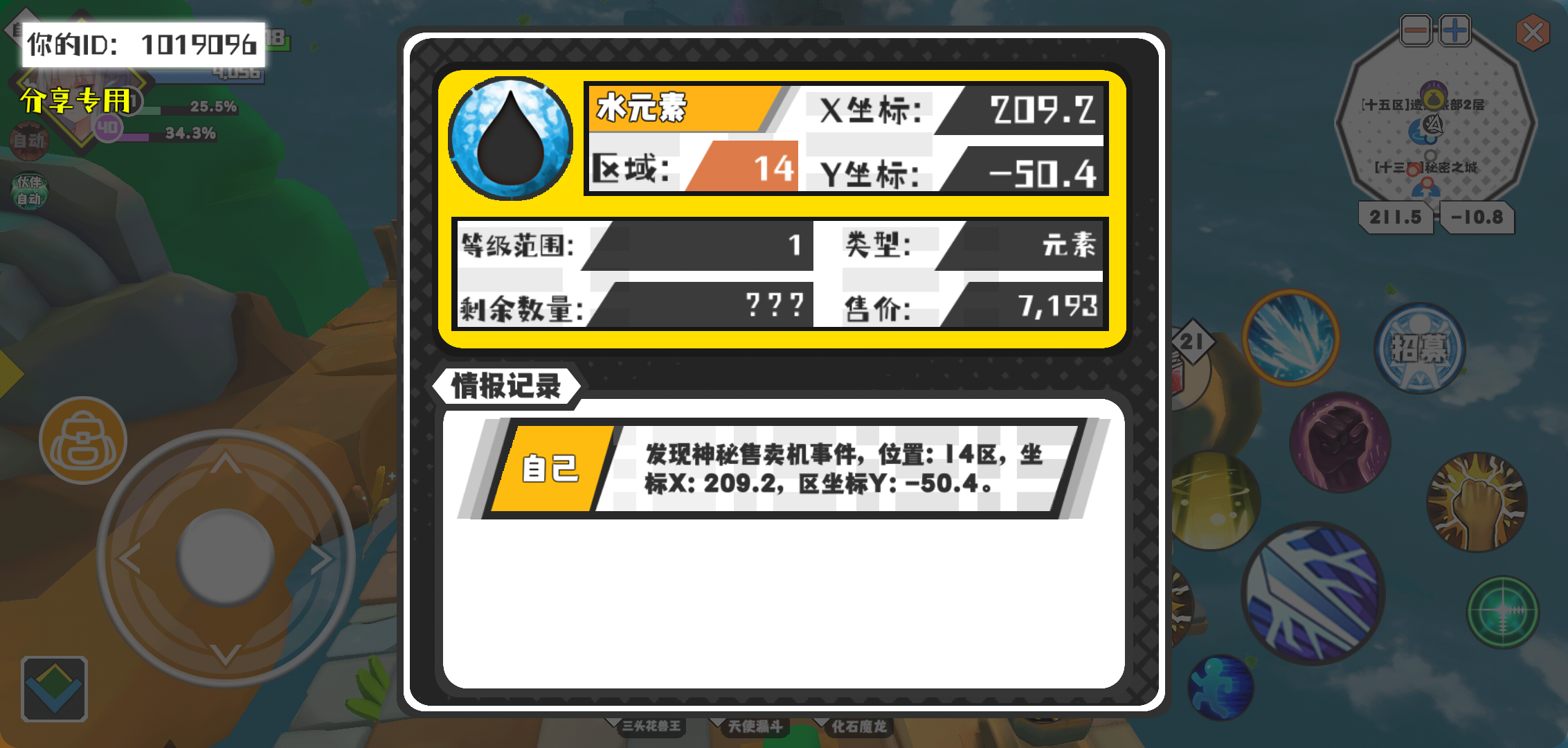 幸运时刻分享! 【神秘售卖机】2月29日上午10点 - 水元素【1级 】【稀有度:神秘】 【14区】 【X:209.2, Y:-50.4】