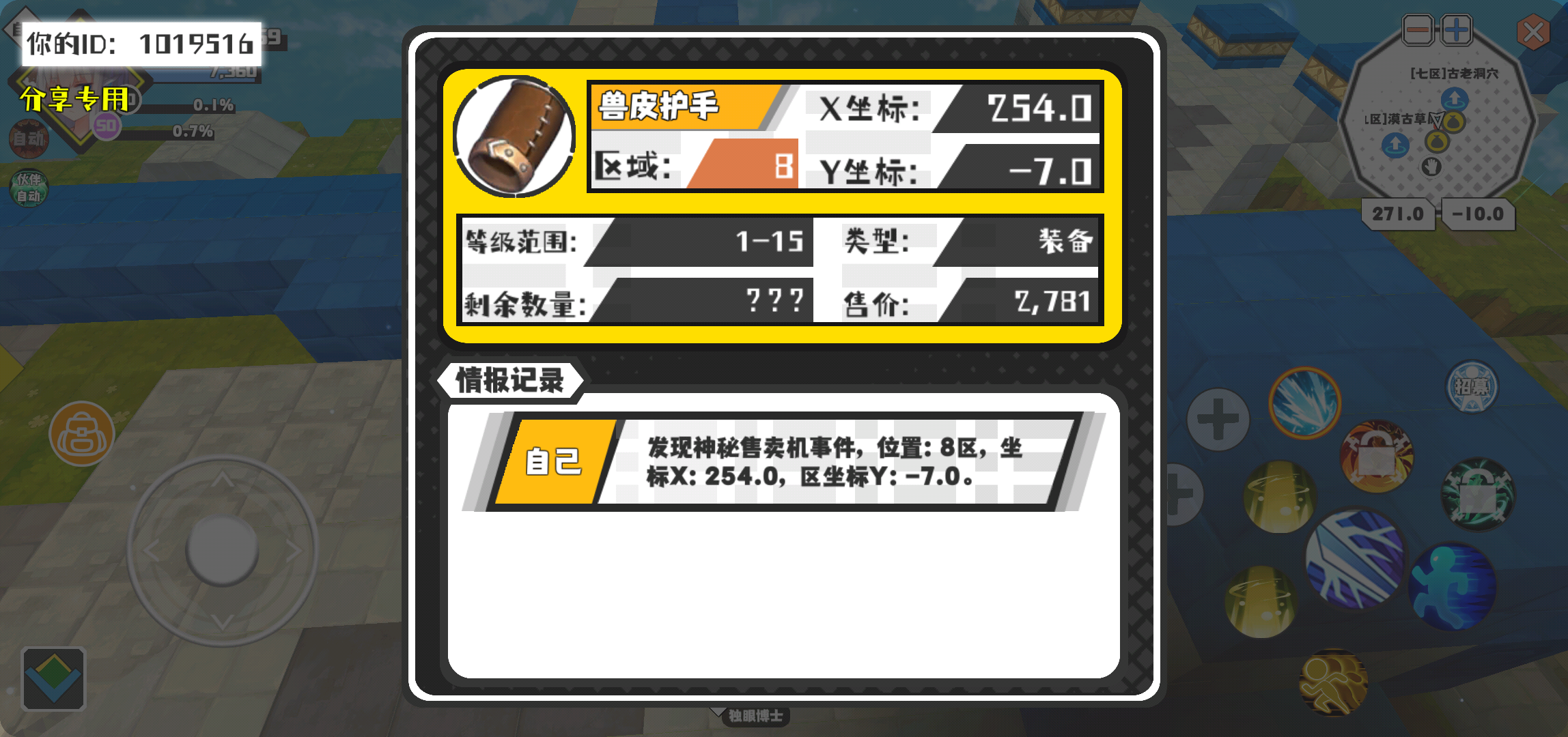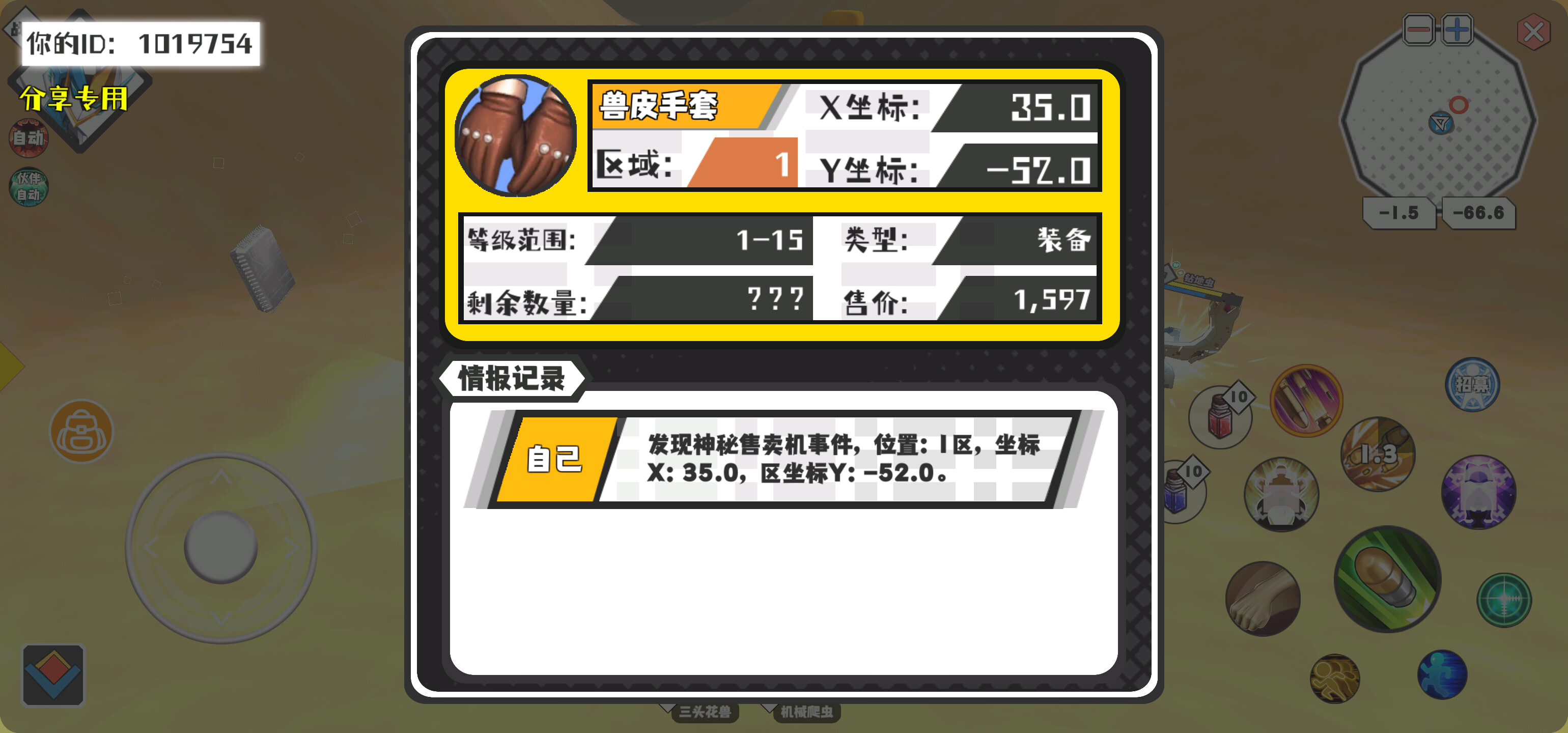 幸运时刻分享! 【神秘售卖机】2月28日下午2点 - 兽皮手套【1-15级 】【稀有度:稀有】 【1区】 【X:35.0, Y:-52.0】