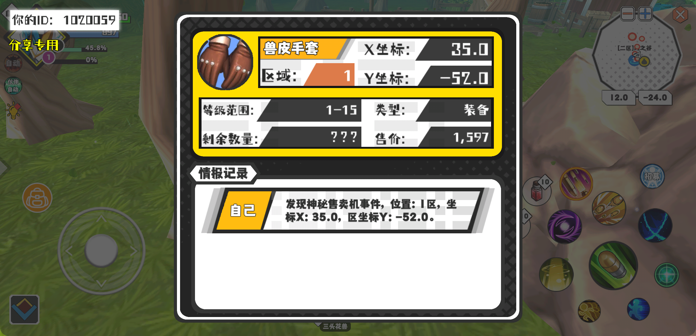幸运时刻分享! 【神秘售卖机】2月28日上午9点 - 兽皮手套【1-15级 】【稀有度:稀有】 【1区】 【X:35.0, Y:-52.0】
