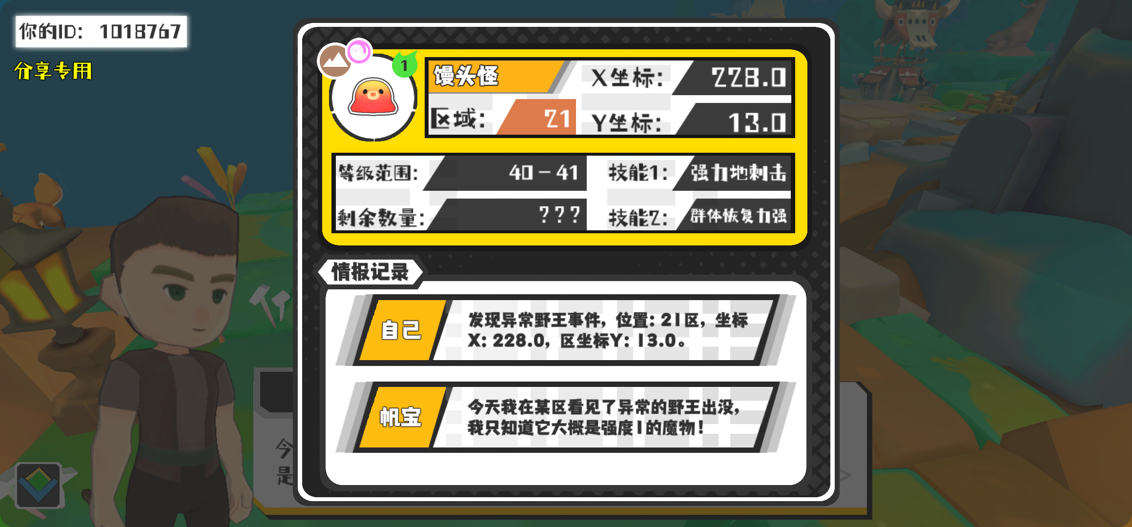 幸运时刻分享! 【野王异常出没】2月28日上午10点 - 馒头怪【强度1】 【21区】 【X:228.0, Y:13.0】
