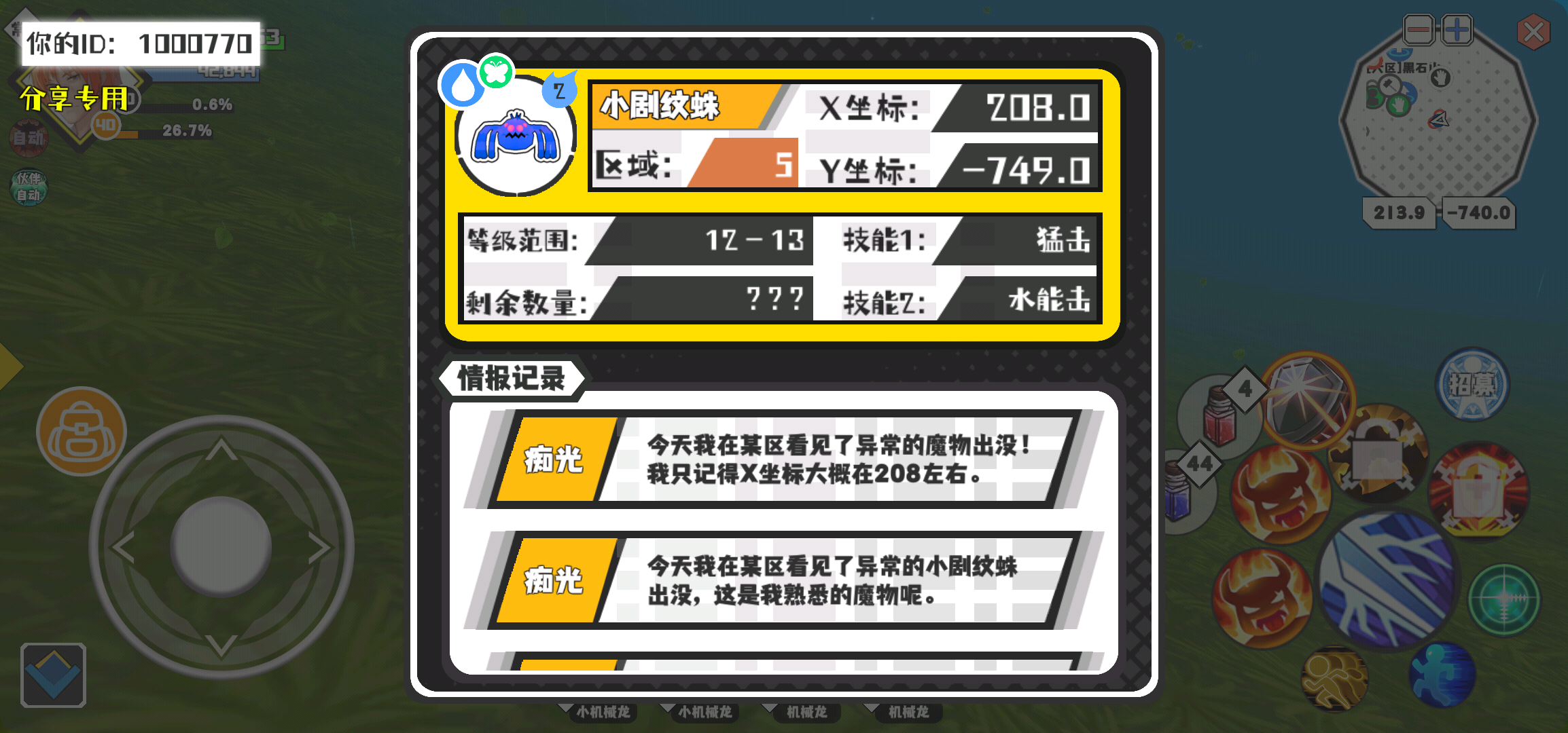 幸运时刻分享! 【魔物异常出没】2月28日下午12点 - 小剧纹蛛【强度2】 【5区】 【X:208.0, Y:-749.0】