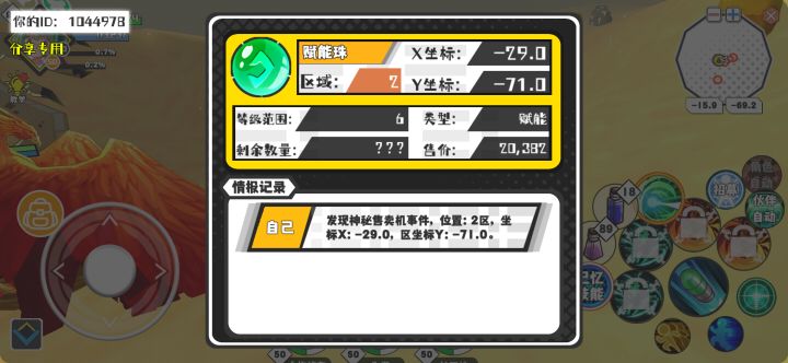 幸运时刻分享! 【神秘售卖机】7月21日上午9点 - 赋能珠【6级 】【稀有度:精良】 【2区】 【X:-29.0, Y:-71.0】