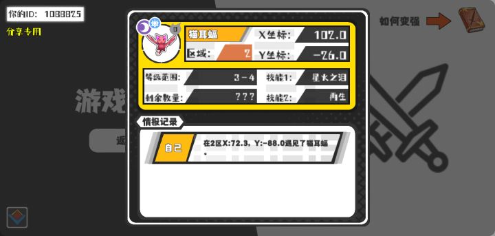 幸运时刻分享! 【魔物异常出没】8月5日下午12点 - 猫耳蝠【强度0】 【2区】 【X:102.0, Y:-26.0】