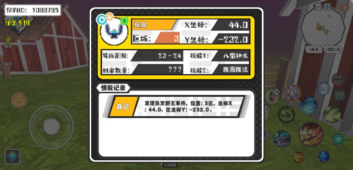 幸运时刻分享! 【野王异常出没】8月1日下午8点 - 乌鸟【强度1】 【3区】 【X:44.0, Y:-232.0】
