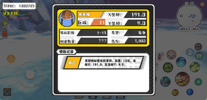 幸运时刻分享! 【神秘售卖机】8月2日下午8点 - 兽皮帽【1-15级 】【稀有度:稀有】 【11区】 【X:191.0, Y:9.0】