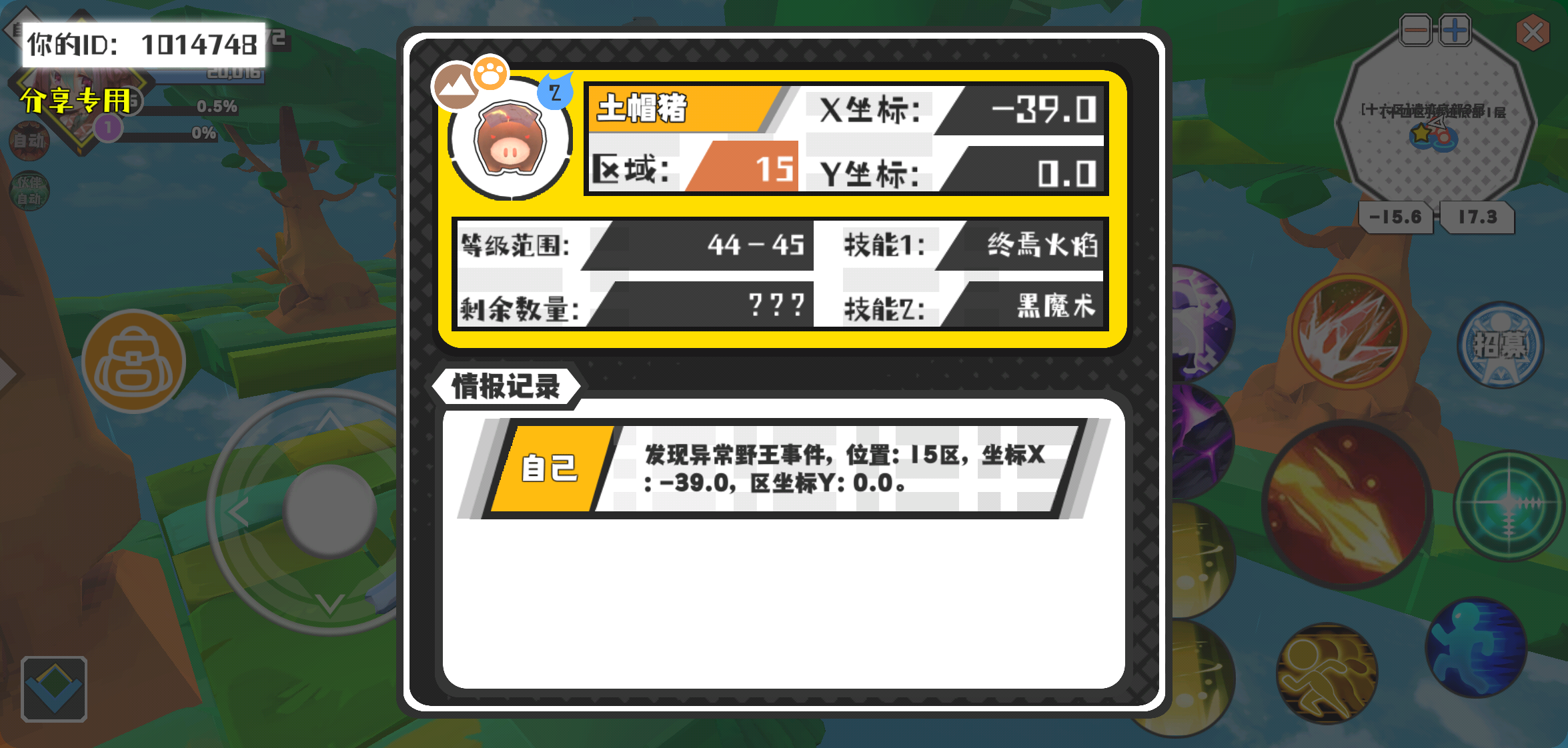 幸运时刻分享! 【野王异常出没】2月27日上午11点 - 土帽猪【强度2】 【15区】 【X:-39.0, Y:0.0】